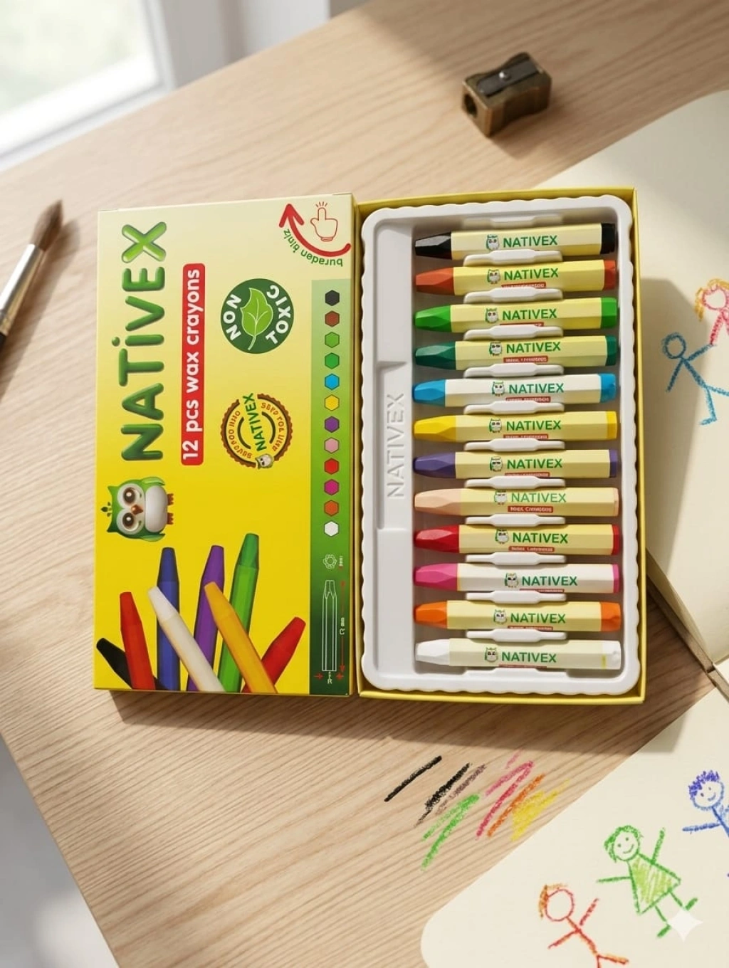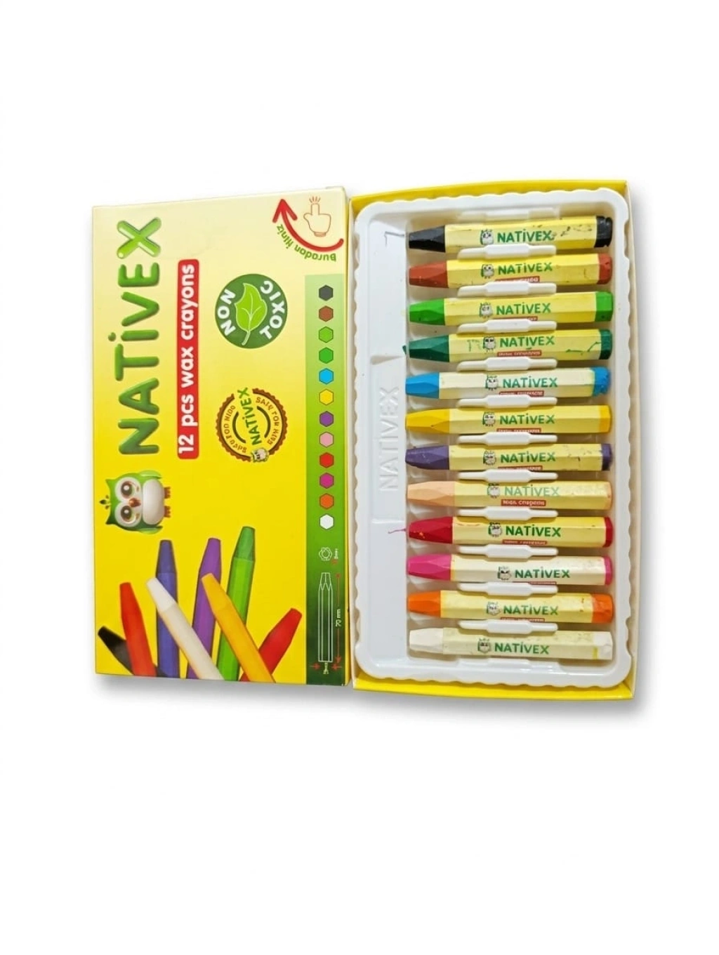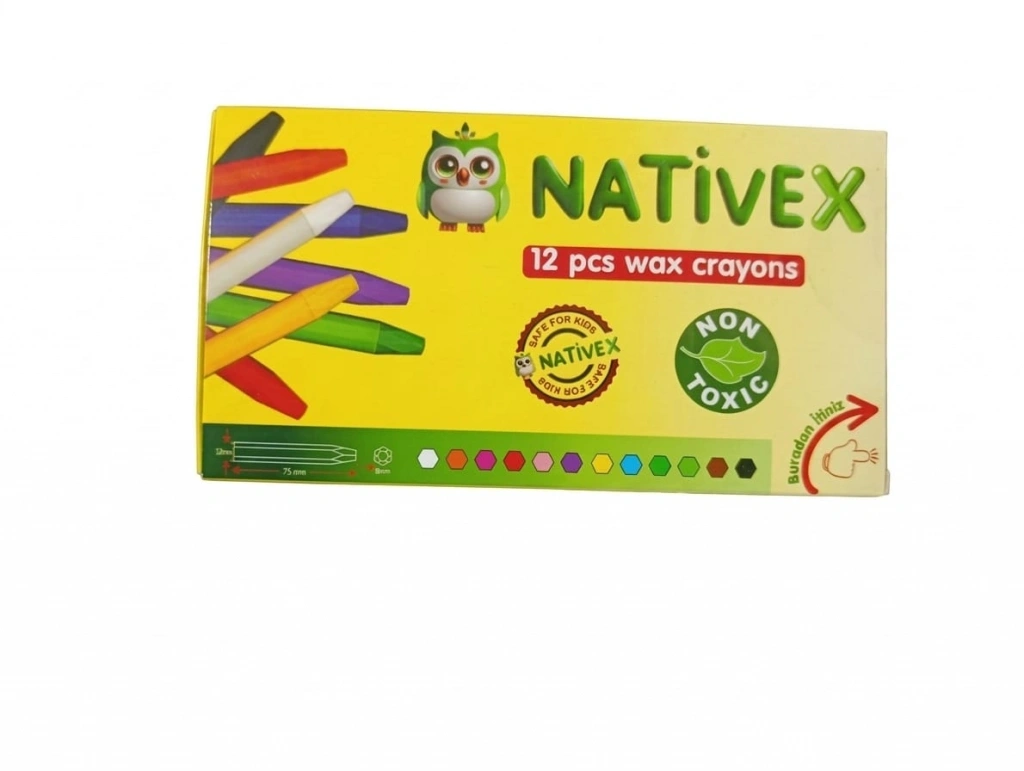 - Nativex 12'li wax crayon pastel boyası, çocukların sanatsal yeteneklerini keşfetmelerine olanak tanır.; - Canlı renkleri ile dikkat çeken bu pastel boya seti, tüm yaş gruplarına hitap eder.; - Web renk kodu ile kolayca tanımlanabilir ve farklı projelerde kullanılmaya uygundur.; - Tehlikeli madde içermeyen yapısıyla güvenle kullanılabilir; çocukların güvenliği düşünülerek tasarlanmıştır.; - Nativex markası tarafından üretilen bu pastel boyaları, kalite standartlarına uygun olarak üretilmiştir.
